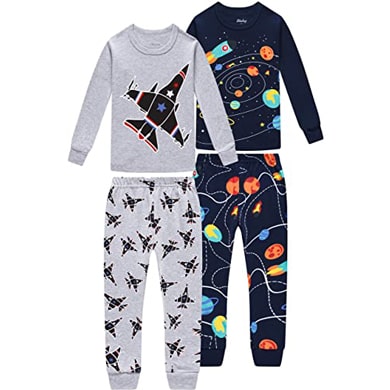 Wide crew neckline, elastic waistband and stretchable material make them easily skip on/off. Breathable, moisture absorbent material and pants set design help kids to lose heat faster and keep warm in cool day